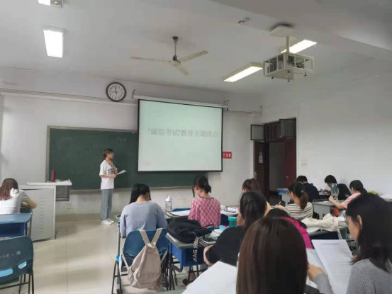 辅导员在会上向同学们讲解了诚信考试的重要性及作弊的危害。诚信考试,既是对每一个考生的考试要求,也是一个员工必备的道德品质。考试作弊践踏了诚信理念,会影响同学们学习的积极性,干扰良好学风的形成。对那些积极上进的员工则是一个沉重的打击,严重阻碍着教育的健康发展。辅导员还通过讲述真实的例子告诫同学们要诚信考试,各种因为考试作弊而被处分的例子让同学们清楚的认识到了考试作弊会给自己带来的严重后果。