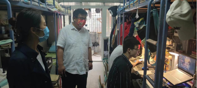 随后,徐书记来到了2021级大二员工宿舍,他们刚刚搬到新校区,对于他们来讲,英才校区以及国基生活区较为陌生。徐书记与他们亲切交流,叮嘱他们增强安全意识、建设和谐生活环境,在老员工活中做好发展规划、增强专业知识、提升综合素质,嘱咐他们遇到自己难以解决的问题时,及时与老师沟通,尽快融入新校区的学习、生活。